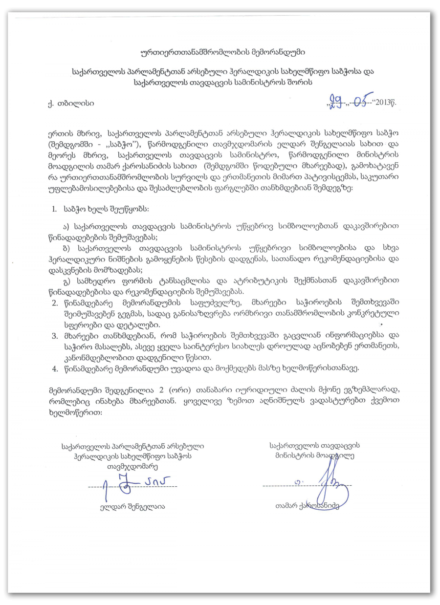 ურთიერთთანამშრომლობის მემორანდუმი საქართველოს პარლამენტთან არსებული ჰერალდიკის საბჭოსა