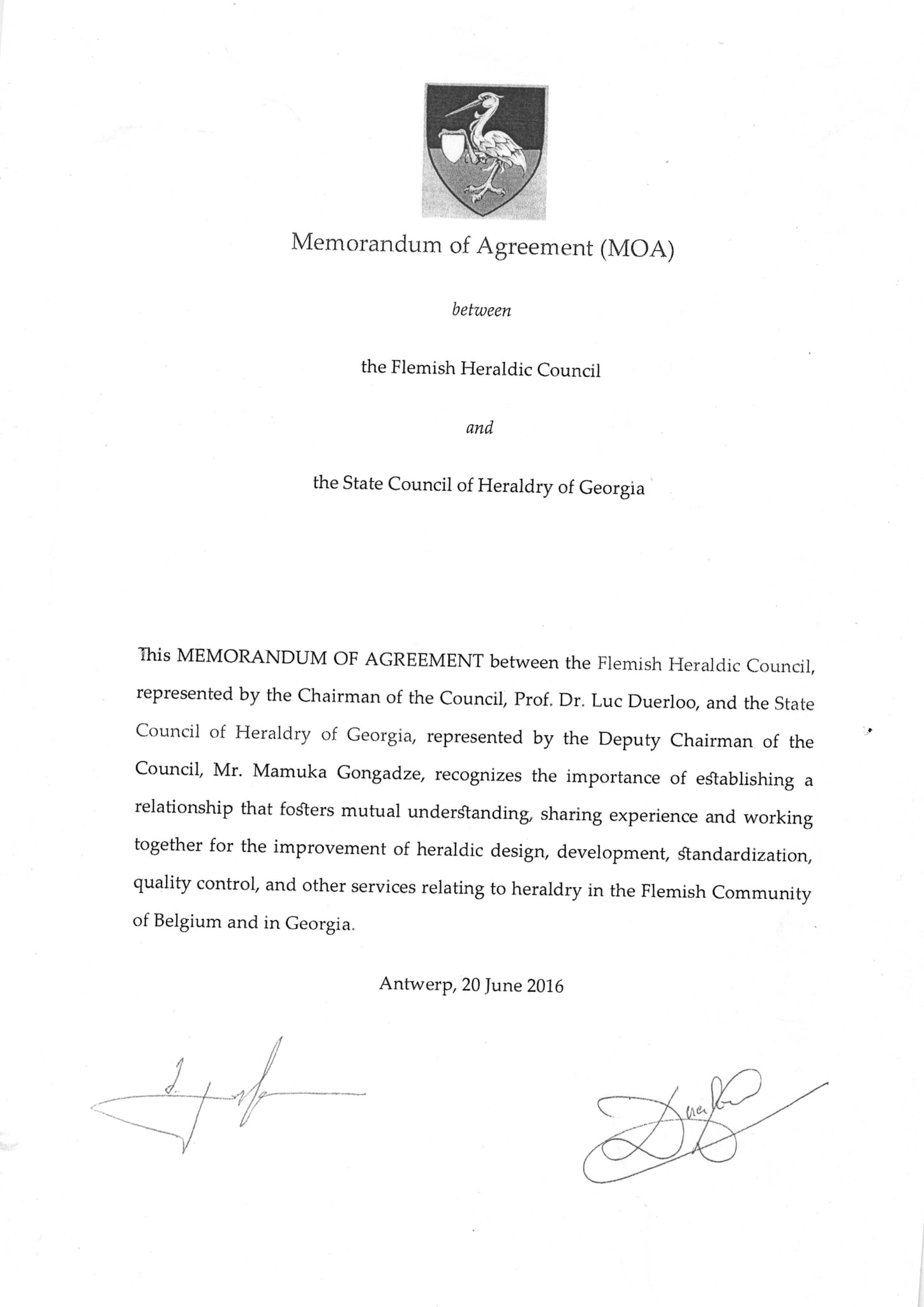 ურთიერთთანამშრომლობის მემორანდუმი საქართველოს პარლამენტთან არსებული ჰერალდიკის სახელმწიფო საბჭოსა და ლიეტუვის ჰერალდიკის კომისიას შორის